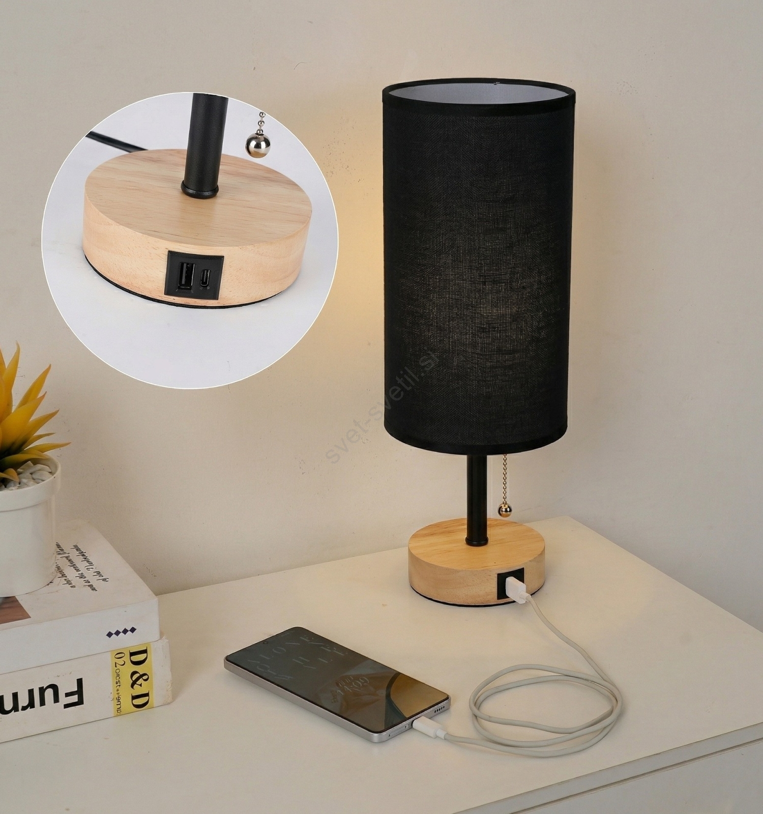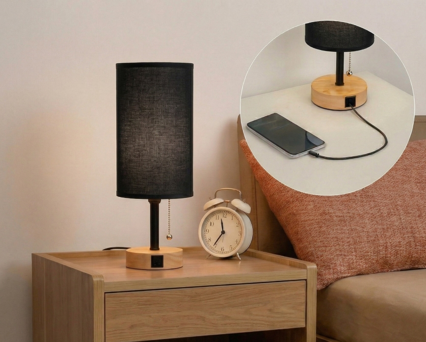 Brilagi - Namizna svetilka z USB priključkom TABLON 1xE27/25W/230V hrast/črna je značilen lep in funkcionalen dizajn. Za svetilko je primerna žarnica z vznožkom E27. Tukaj lahko kupite ostale žarnice po ugodnih cenah.