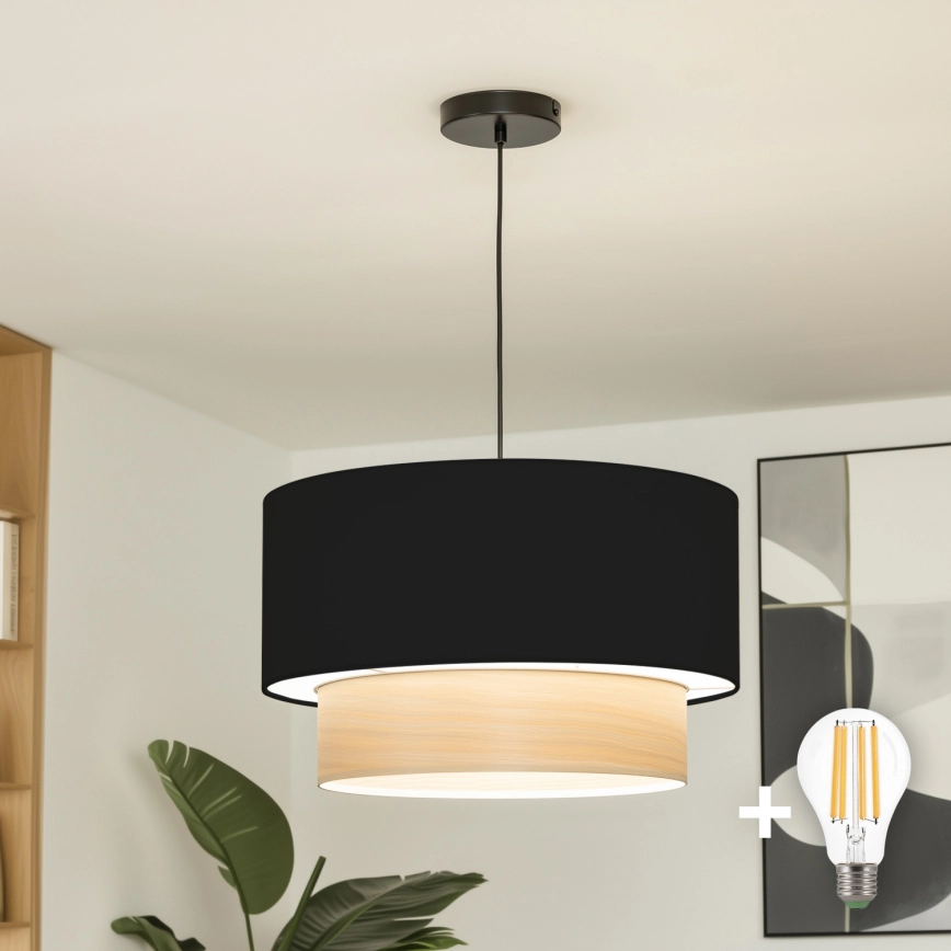 • Brilagi - viseči LED lestenec na kablu CERIA 1xE27/40W/230V premer 50 cm črna/bež