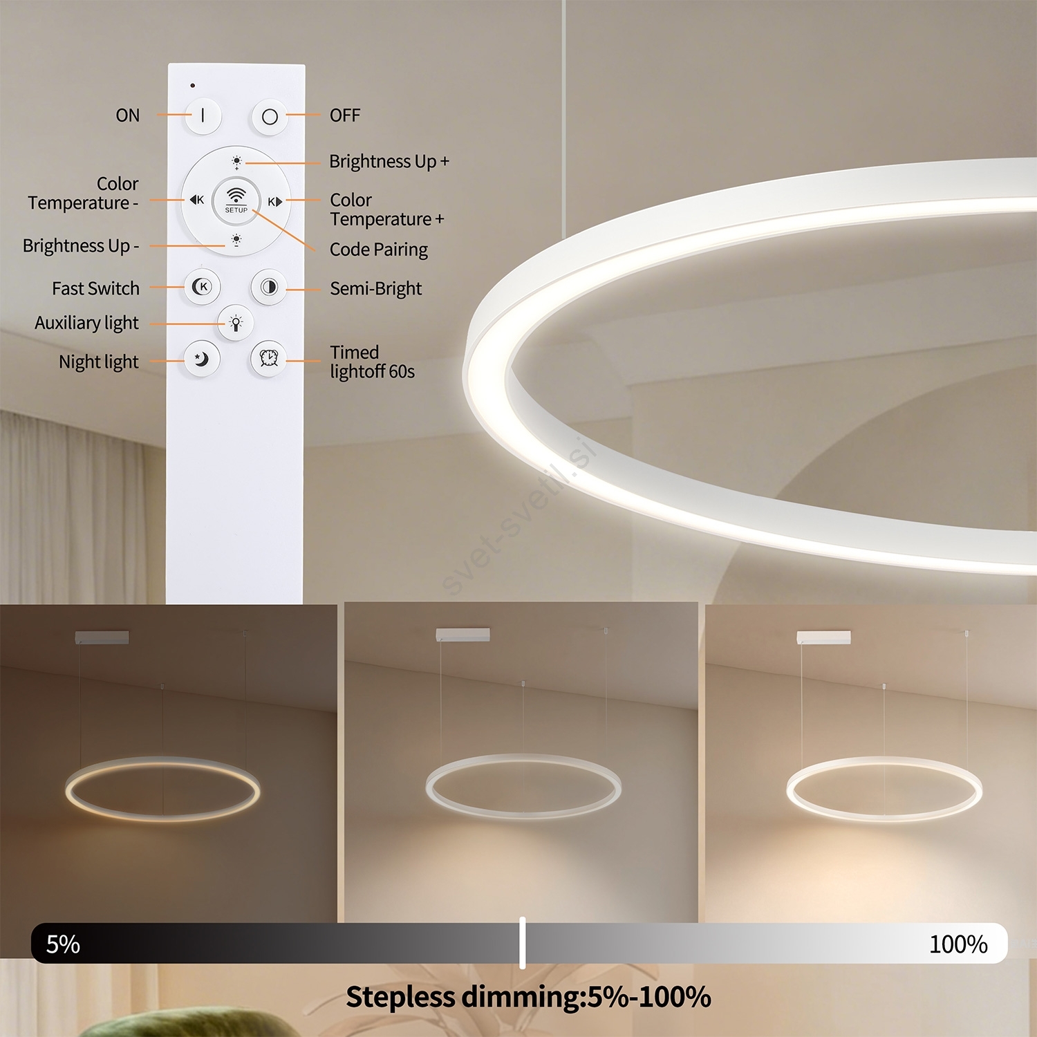 Brilagi - LED zatemljiv viseči lestenec na kablu PORTOFINO LED/60W/230V 3000-6000K premer 80 cm bela + daljinski upravljalnik