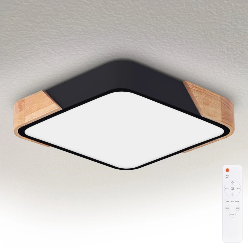 Brilagi - LED zatemnjevalna stropna svetilka PILANA LED/48W/230V 3000-6500K hrast/črna 42x42 cm + daljinski upravljalnik
