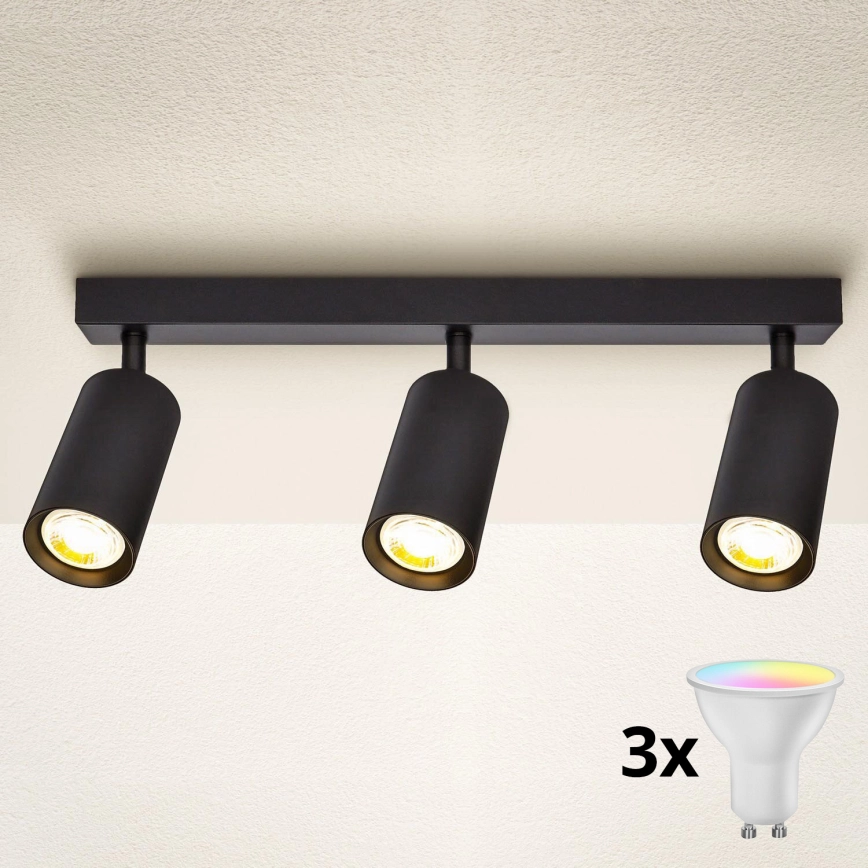 • Brilagi - LED RGBW zatemljivo točkovno svetilo SELE 3xGU10/6W/230V 3000K črno + daljinski upravljalnik