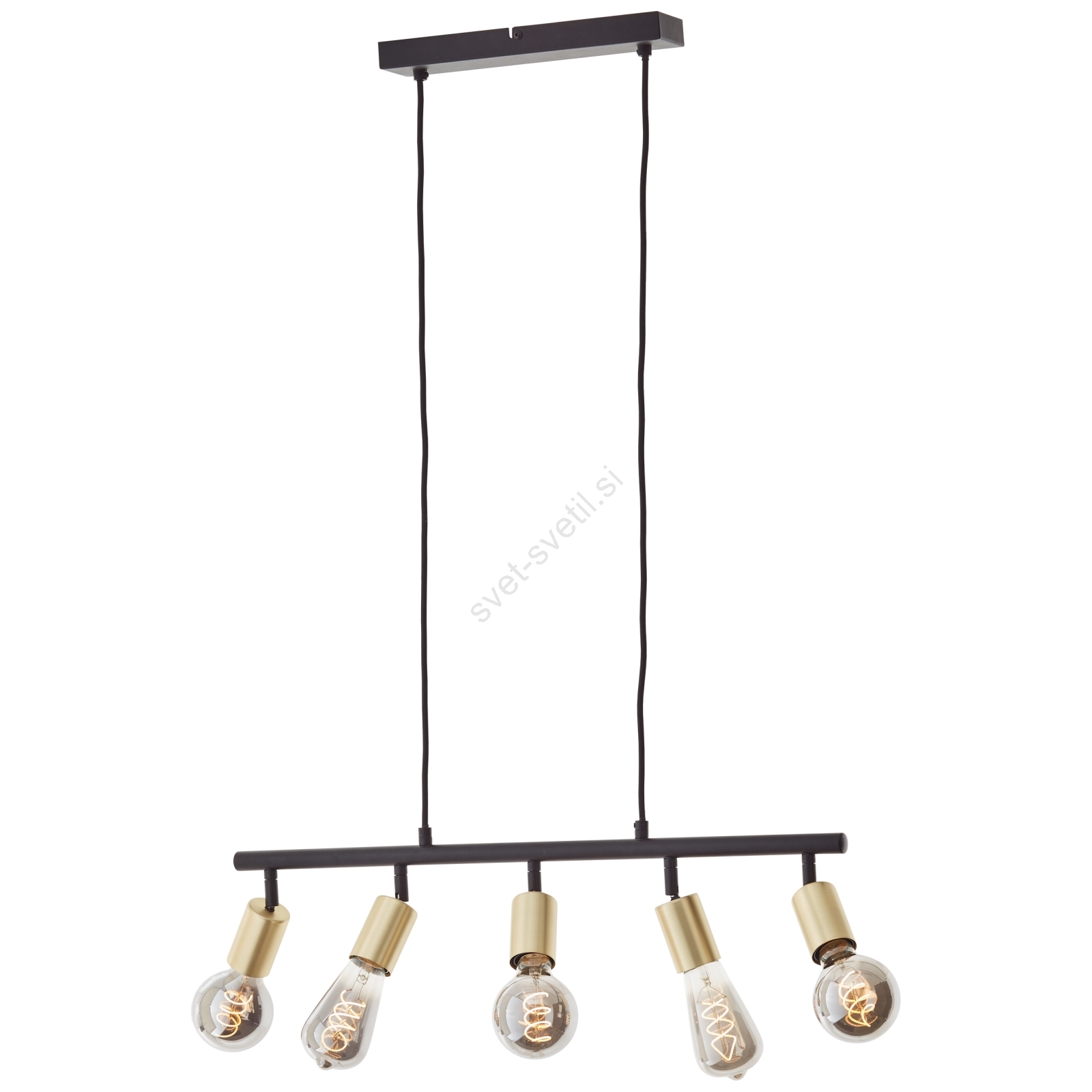 Brilliant - Viseči lestenec na kablu TIFFANY 5xE27/28W/230V črna/mesing je značilen lep in funkcionalen dizajn. Za svetilko je primerna žarnica z vznožkom E27. Tukaj lahko kupite ostale žarnice po ugodnih cenah.