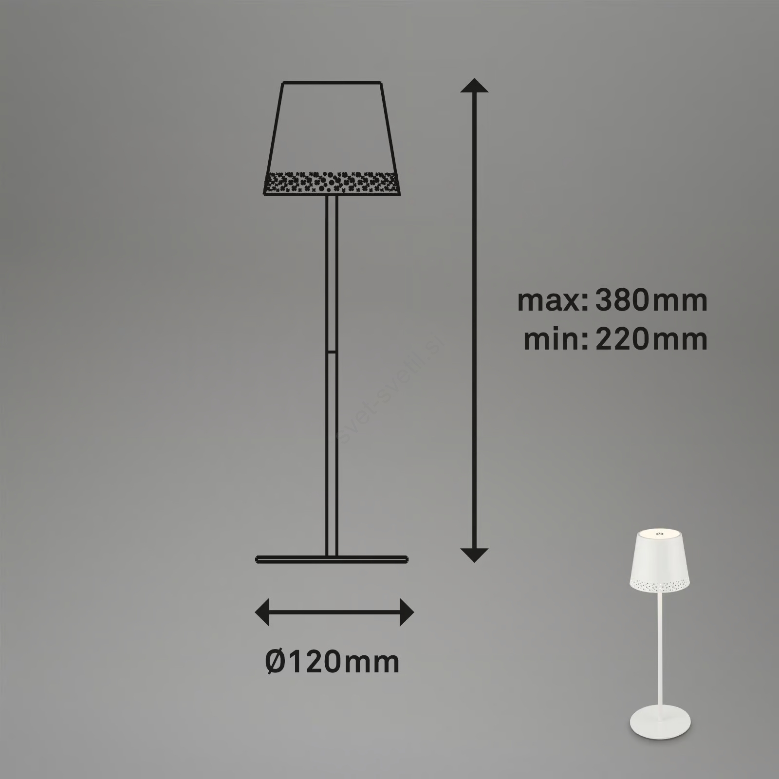 • Brilo - KIKI LED polnilna namizna zunanja svetilka, z upravljanjem na dotik in nastavljivo svetlostjo, LED/2,6W/5V, IP44, 2600 mAh, srebrna