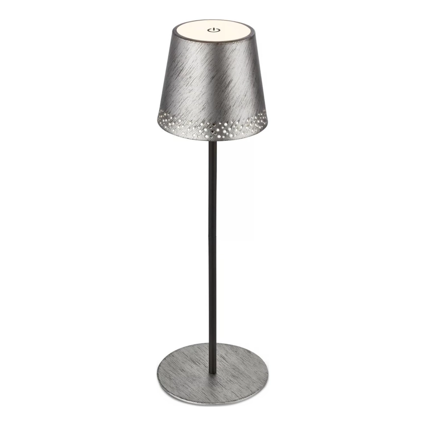 Brilo - KIKI LED polnilna namizna zunanja svetilka, z upravljanjem na dotik in nastavljivo svetlostjo, LED/2,6W/5V, IP44, 2600 mAh, srebrna