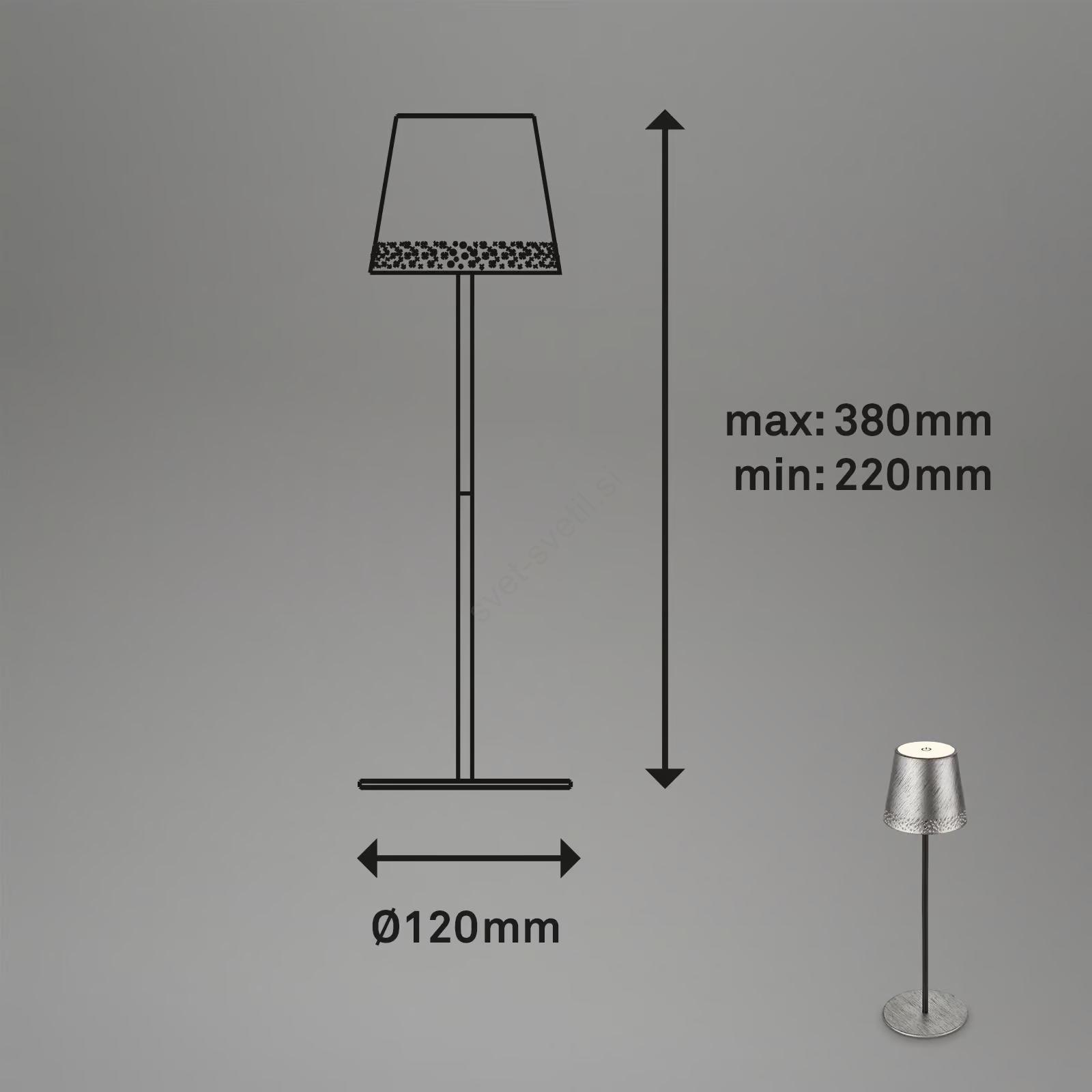 • Brilo - KIKI LED polnilna namizna zunanja svetilka, z upravljanjem na dotik in nastavljivo svetlostjo, LED/2,6W/5V, IP44, 2600 mAh, srebrna