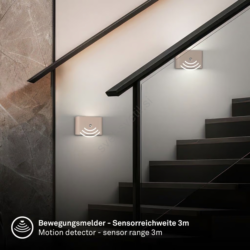 • Briloner 3878011 - LED polnilna stenska svetilka s senzorjem gibanja in mraka CHAT LED/3W/5V 2000 mAh bež