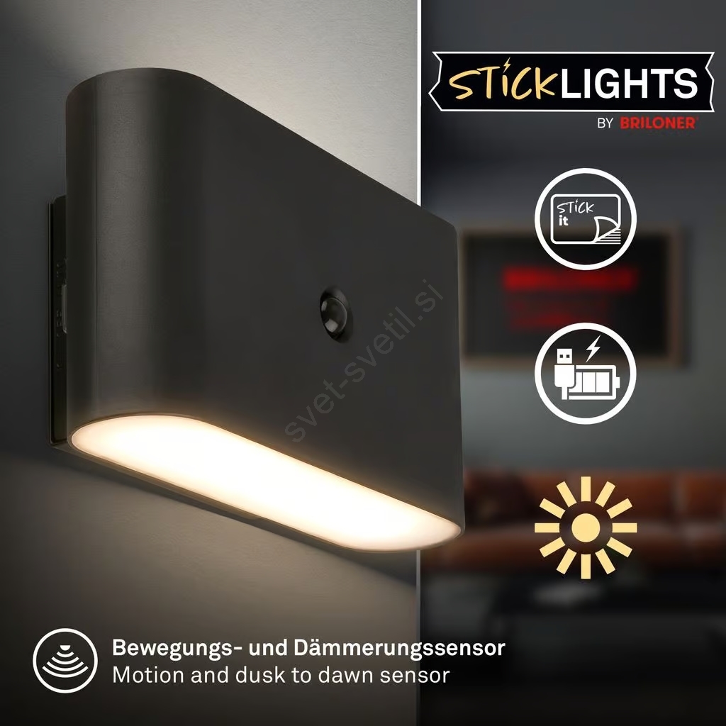 • Briloner 3878015 - LED polnilna stenska svetilka s senzorjem gibanja in mraka CHAT LED/3W/5V 2000 mAh črna