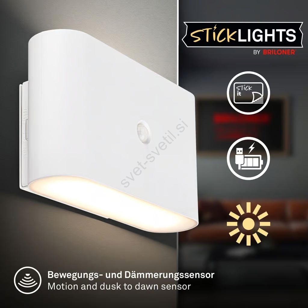 • Briloner 3878016 - LED polnilna stenska svetilka s senzorjem gibanja in mraka CHAT LED/3W/5V 2000 mAh bela