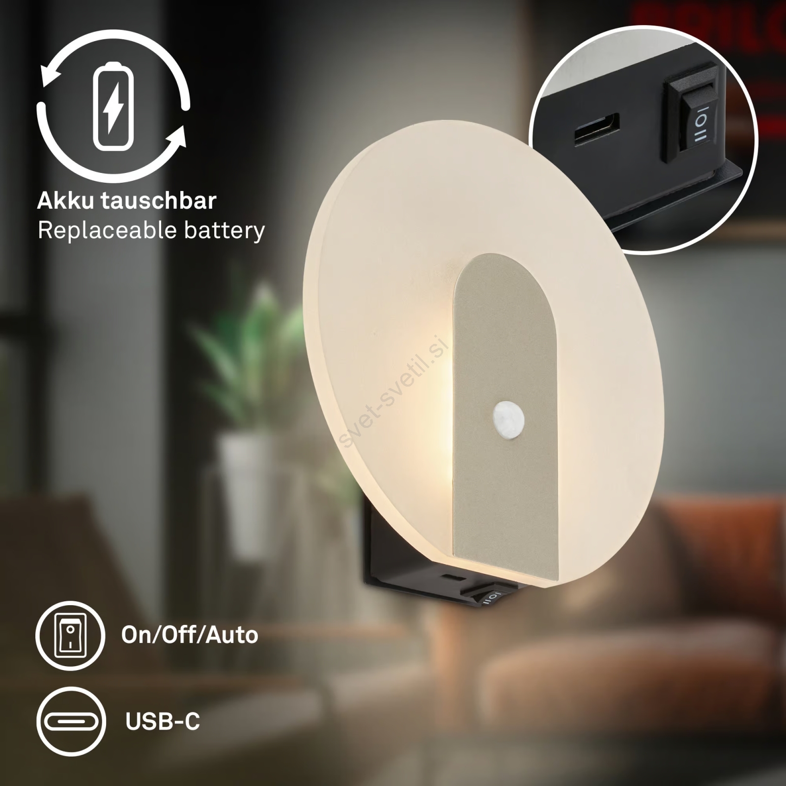 • Briloner 3889015 - polnilna LED stenska svetilka TARO s senzorjem gibanja in senzorjem za temo, LED/2,5W/5V, 1800 mAh, črna