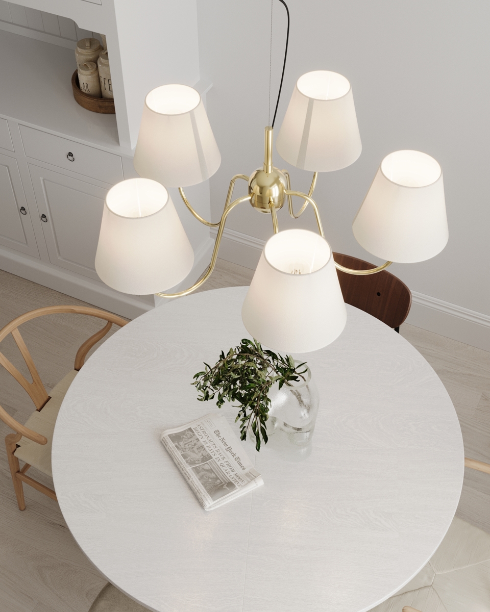 ByRydens - Viseči lestenec na kablu LYNF 5xE14/8W/230V medenina/bela