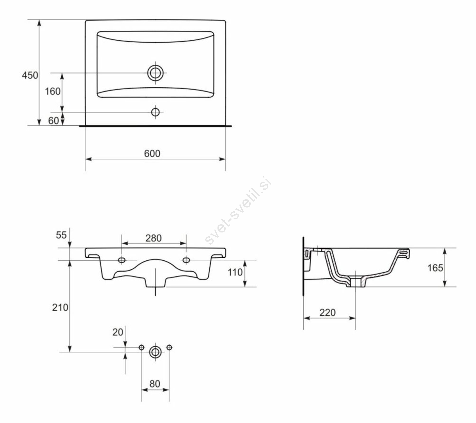 • Umivalnik je primeren za vgradnjo na pult ali za stensko montažo.