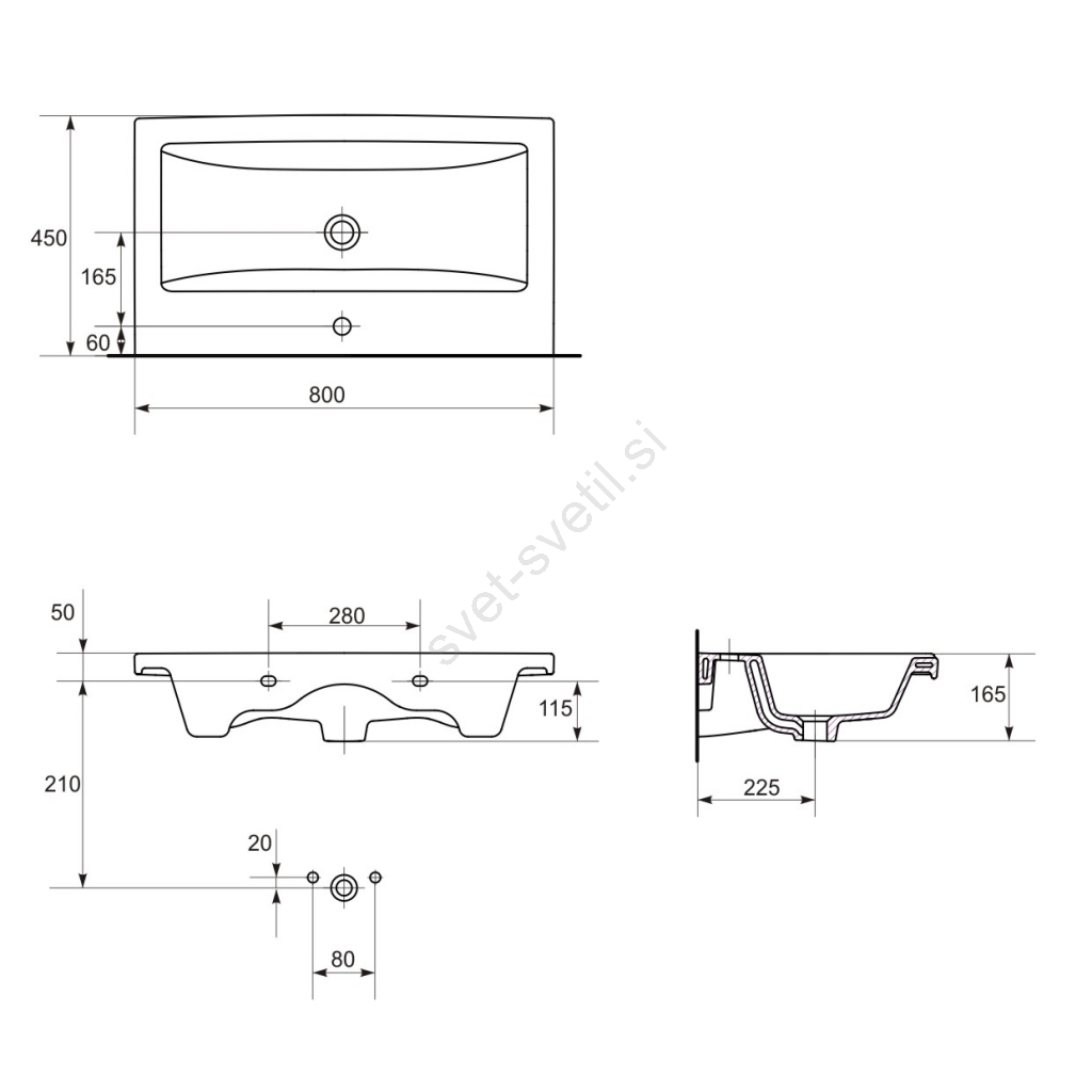 • V paketu je umivalnik brez sifona in pipe.