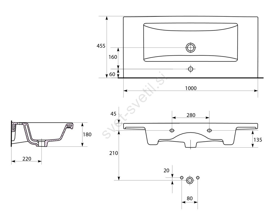 • V paketu je umivalnik; sifon in pipa nista vključena.