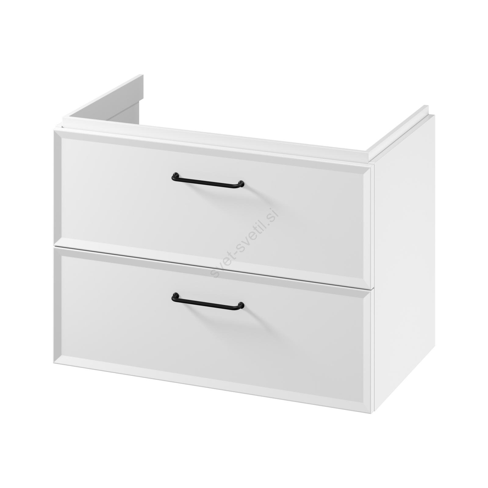 • Ročaji predalov niso priloženi, jih je treba dokupiti posebej, na voljo so v treh barvnih različicah (srebrna, črna in zlata).