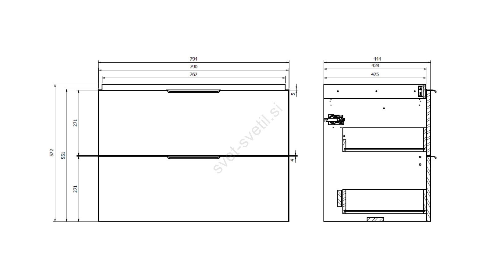• Sprednja stran in korpus omarice sta izdelana iz 16 mm iverne plošče z dekorjem hrasta.