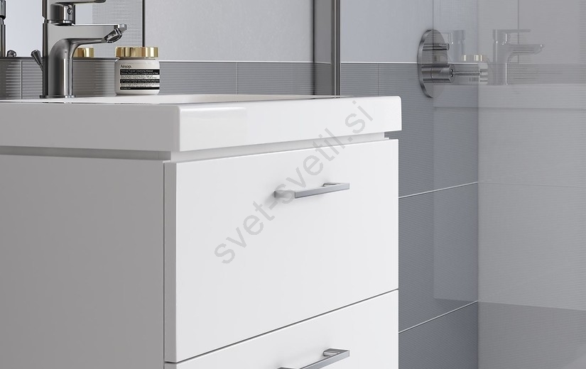 • Sprednja stran in korpus omarice sta izdelana iz 16 mm iverne plošče z belo lakirano površino.