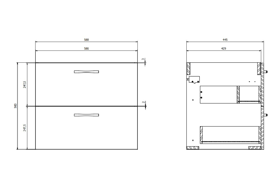 • Sprednji del in korpus omarice sta izdelana iz 16 mm iverne plošče.