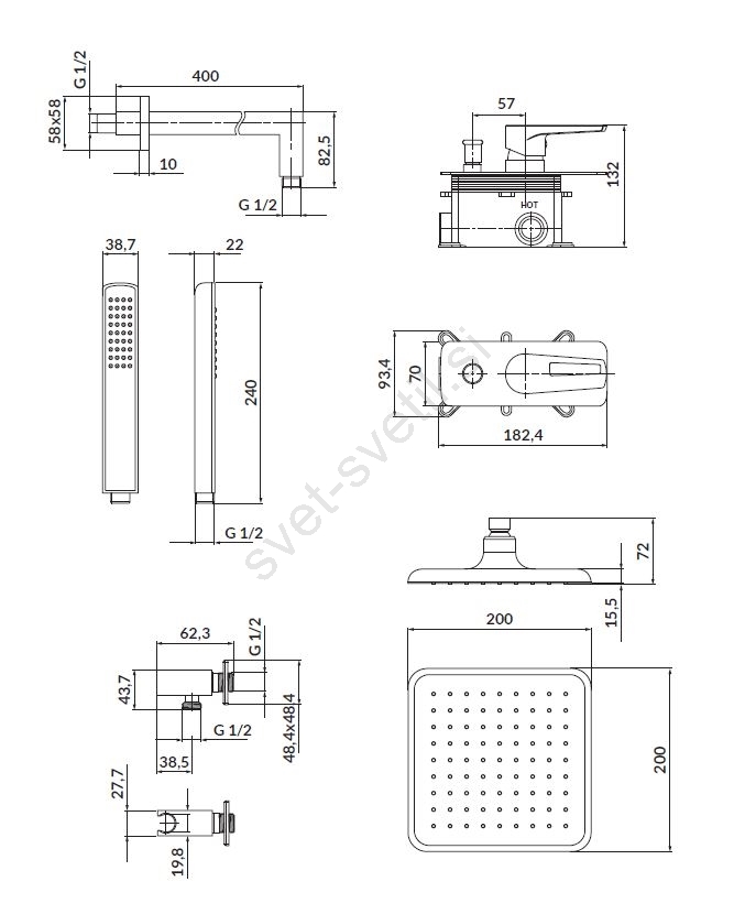• Ročna prha z 1 funkcijo.