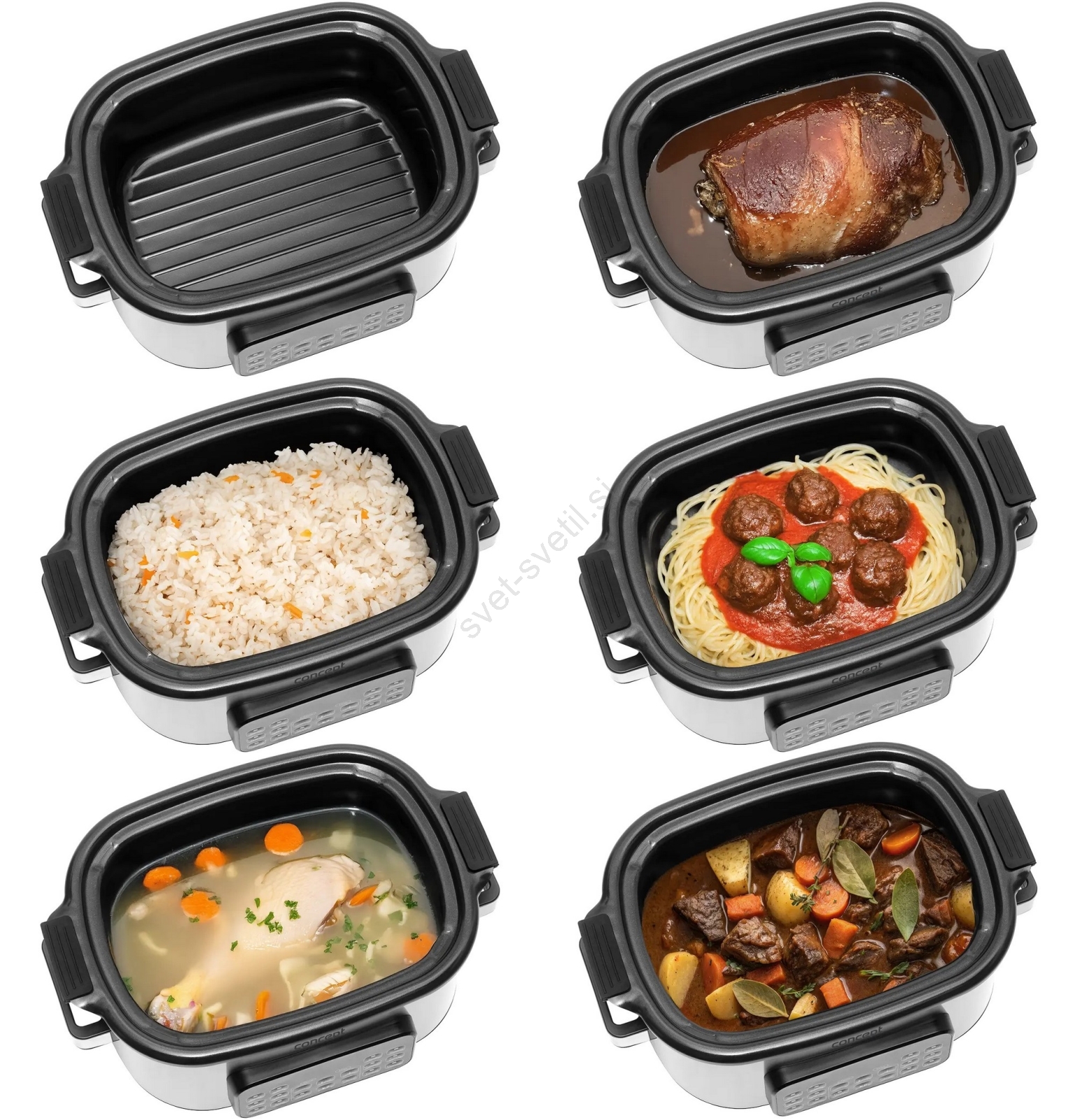 • 10 programov: počasi kuhanje pri nizki in višji temperaturi, praženje, pečenje, ogrevanje, dušenje, riž, žitarice/stročnice, jogurt, para + ročni način.