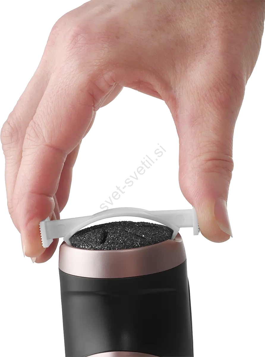 • Vrteči se brusni disk varno odstrani suho in zadebeljeno kožo, ki je neprivlačna in lahko povzroči razpoke kože, nastanek otiščancev in žuljev.