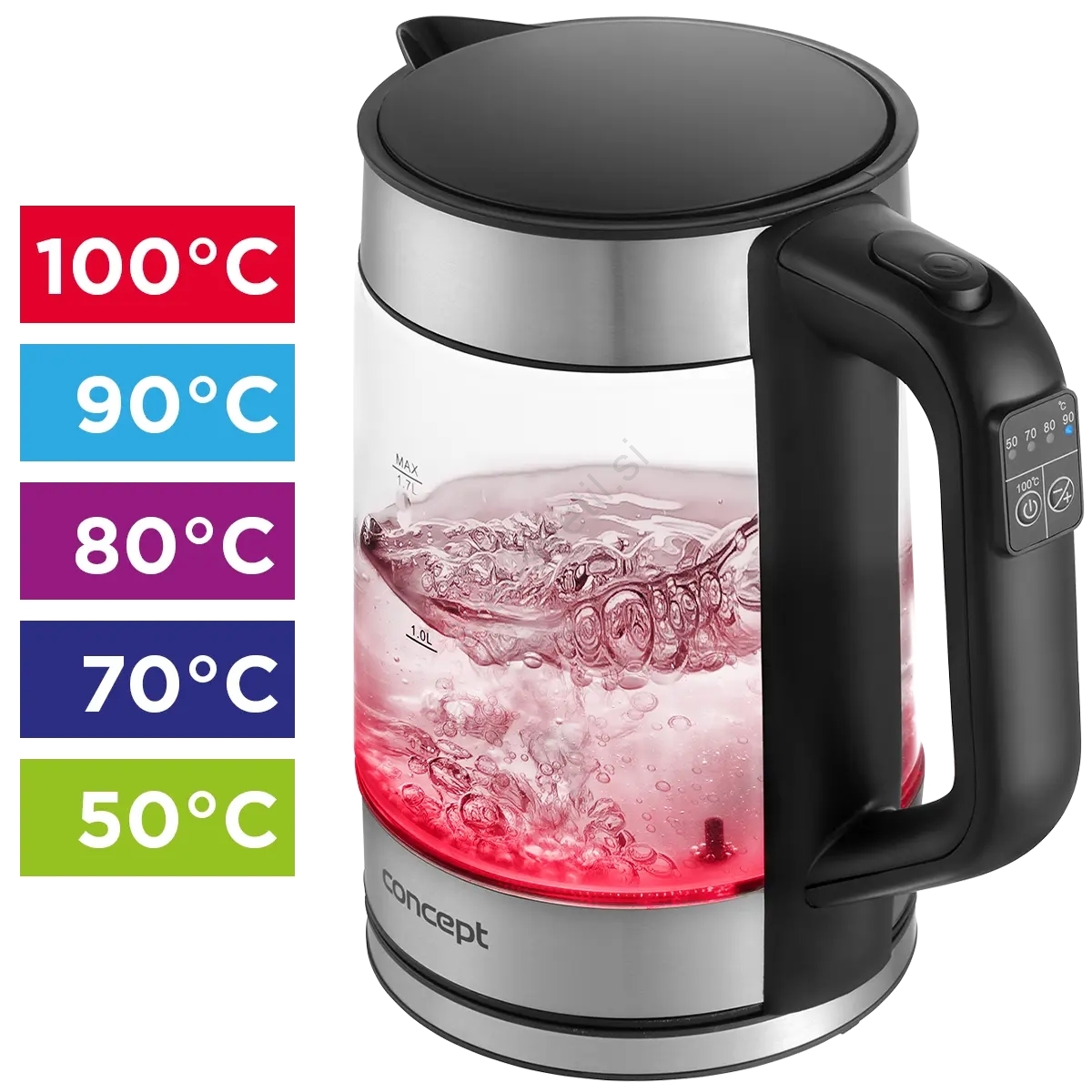 Concept RK4067 - Hitri električni čajnik s termoregulacijo 1,7 l 2200W/230V nerjavno jeklo