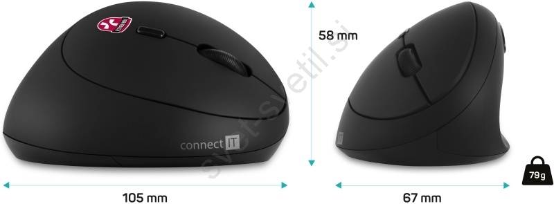 CONNECT IT CMO-2600-BK - Ergonomska brezžična miška 800/1200/1600 DPI, napajanje 1×AA, črna
