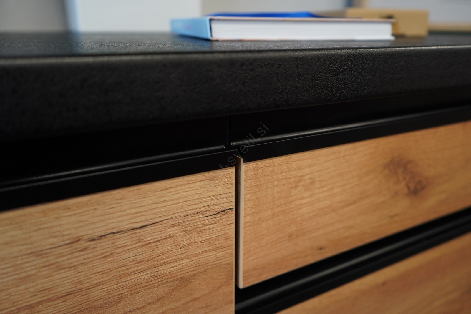 • Sprednje površine zgornjih omaric in spodnjih omaric imajo mat zaključek.