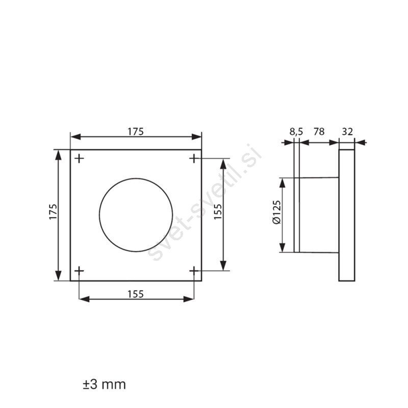 • Ventilator je združljiv z zračnim kanalom premera 125 mm.