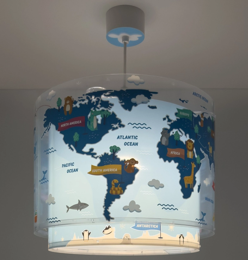 • Dalber 40672 - Otroški lestenec WORLD 1xE27/15W/230V v modri barvi