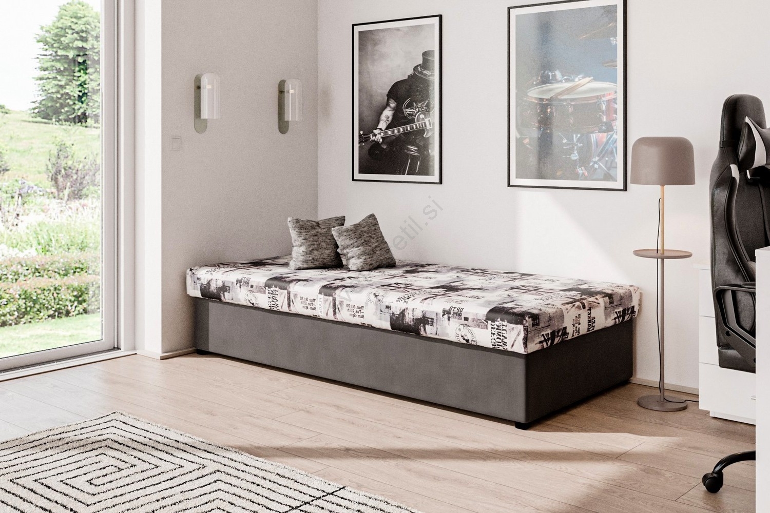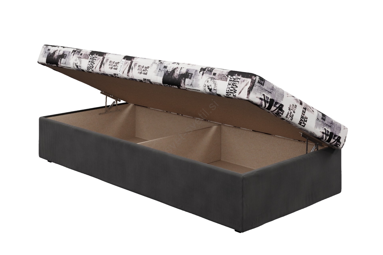 Postelja NOE 90x200 z vzmetnico s vzmetmi in shranjevalnim prostorom, siva/črna