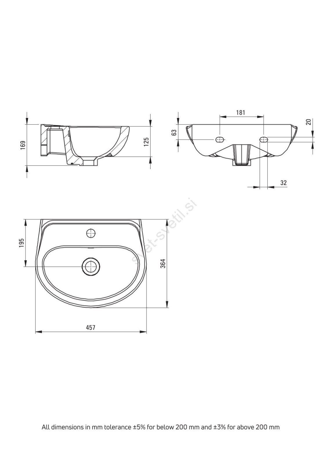 • Umivalnik je izdelan iz trdne in odporne keramike.