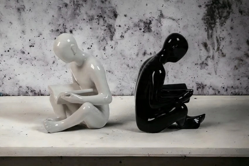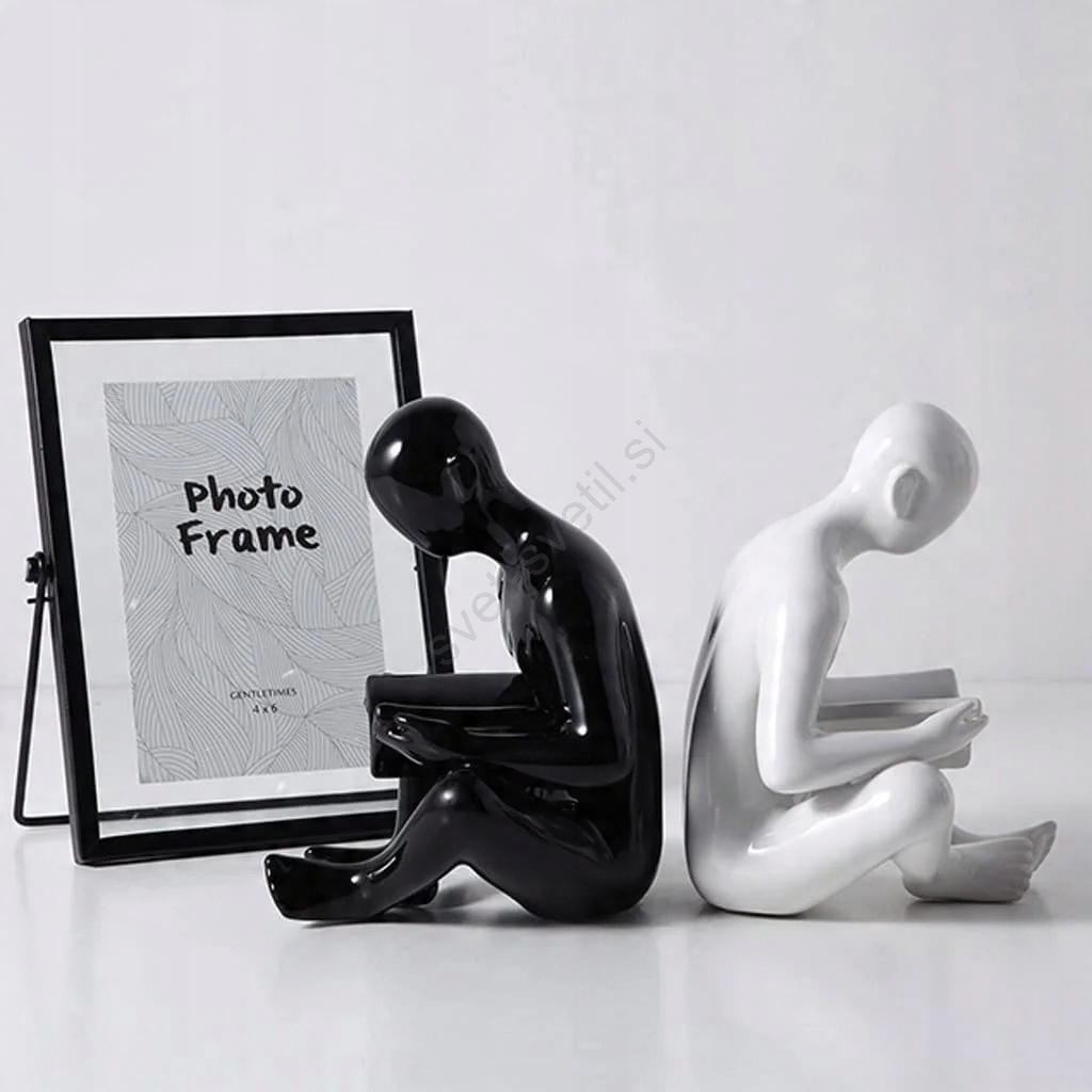 • Držalo za knjige z brezčasnim dizajnom v črni in beli barvi.