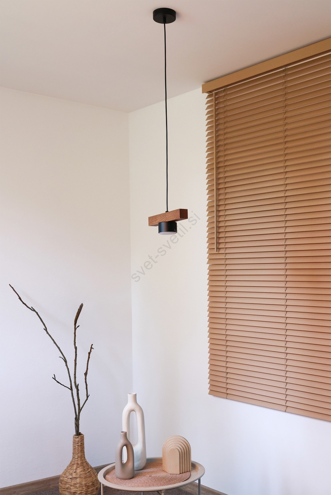 • Svetilo je izdelano iz kovine in visokokakovostnega borovega lesa.