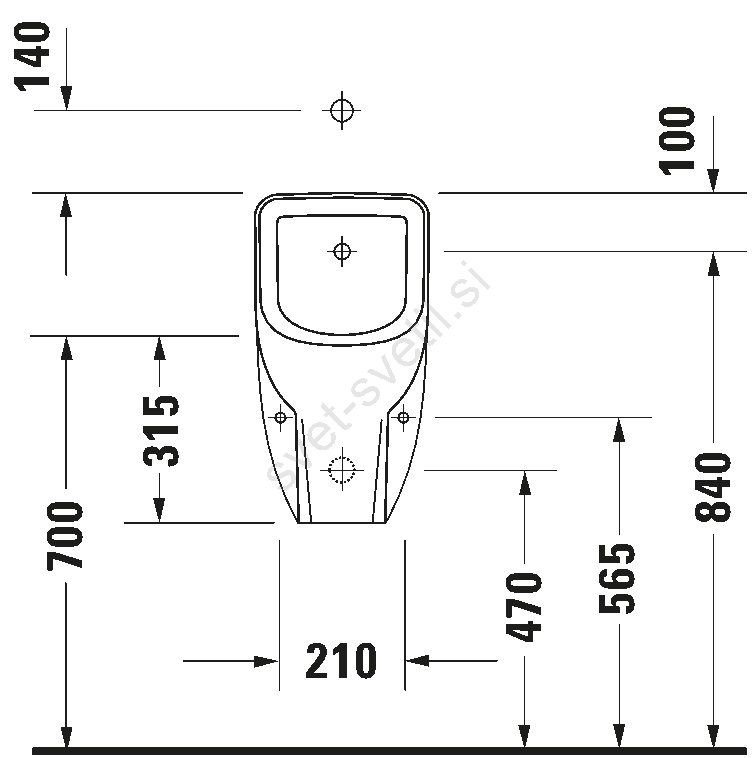 • Pisoar ima zgornji dovod vode, kar omogoča diskretno vodenje cevi in enostavno namestitev.