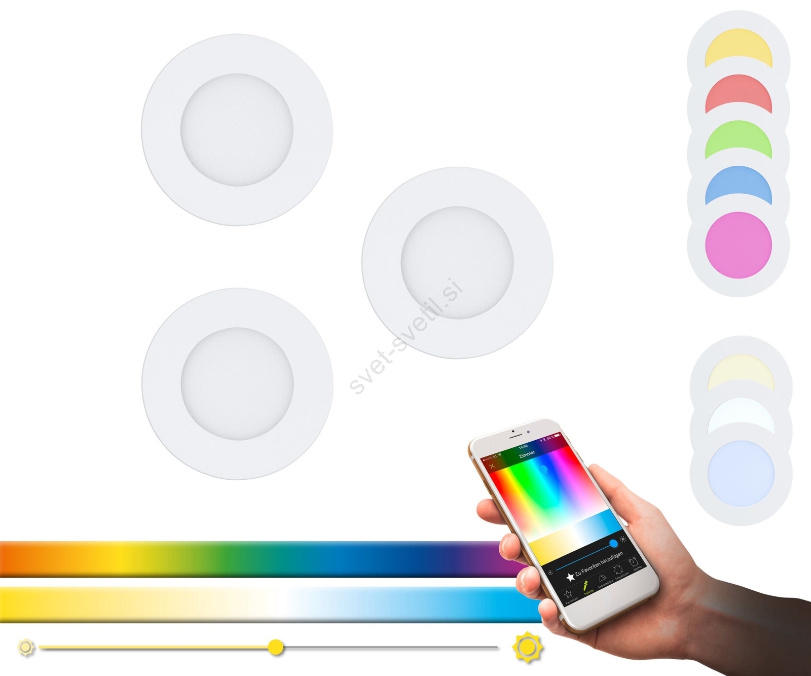 • Eglo - Komplet 3x LED RGB zatemljivih vgradnih stropnih svetilk FUEVA-C 1xLED/3W/230V premer 8,5 cm
