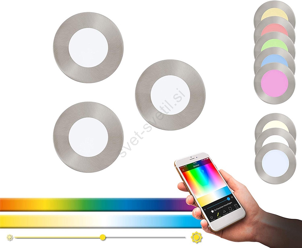 • Eglo - Komplet 3x LED RGB z možnostjo zatemnitve, vgradna stropna svetilka FUEVA-C 1xLED/3W/230V, premer 8,5 cm