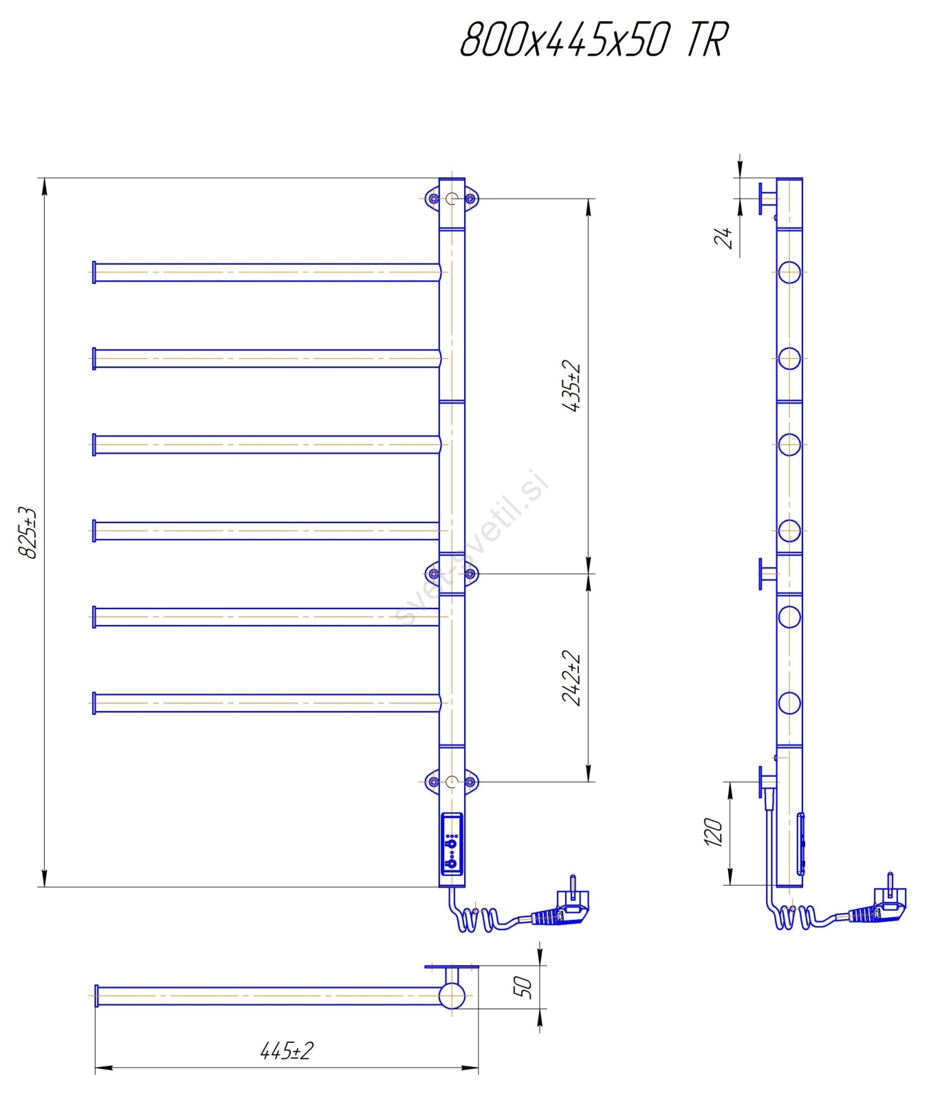 Električni vrtljivi grelec za brisače VEER 80W/230V 80x44,5 cm nerjavno jeklo/sijajni krom