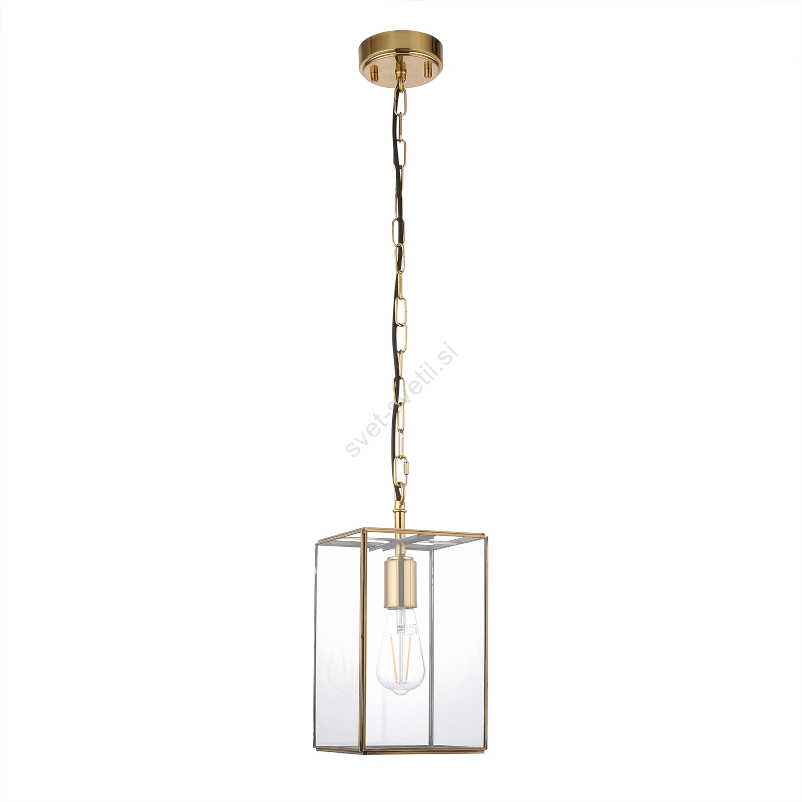 Endon 119142 - Lestenec na verigi HAMMOND 1xE27/10W/230V 17x17 cm medenina