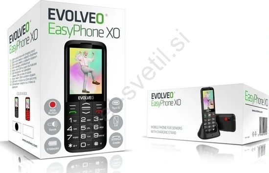 Evolveo - EasyPhone XO, mobilni telefon za starejše, črn