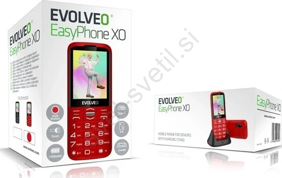Evolveo - EasyPhone XO, mobilni telefon za starejše, rdeč