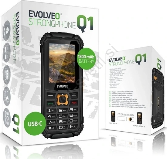 Evolveo - StrongPhone Q1, vodotesen Dual SIM telefon črna/oranžna