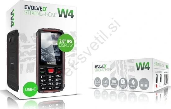 Evolveo - StrongPhone W4, vodoodporen Dual SIM telefon črna/rdeča
