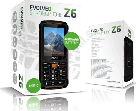 Evolveo - StrongPhone Z6, vodotesen Dual SIM telefon, črna/oranžna