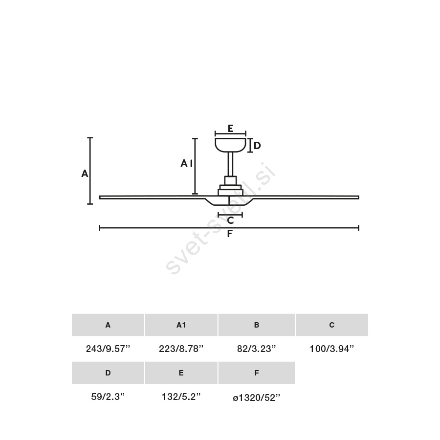• DC motor ima 6 nastavljivih hitrosti z porabo 4-5-7-13-22-32W in 58-75-94-124-152-173 vrtljajev na minuto, odvisno od hitrosti.