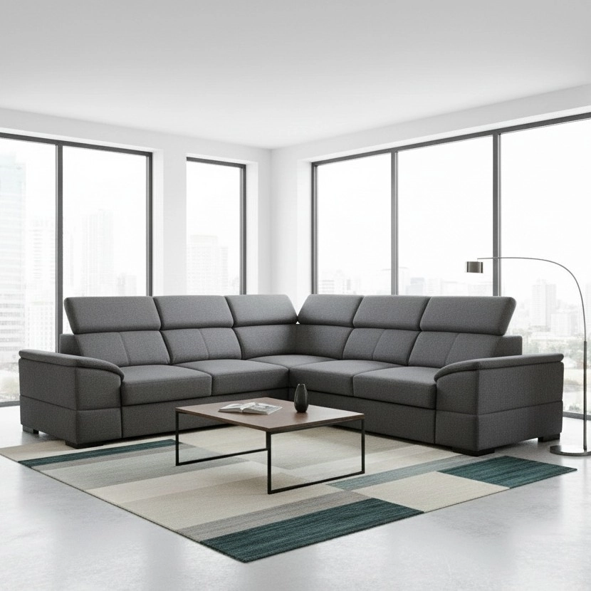 • Prostorna kotna sedežna garnitura ponuja udobje in eleganten dizajn.