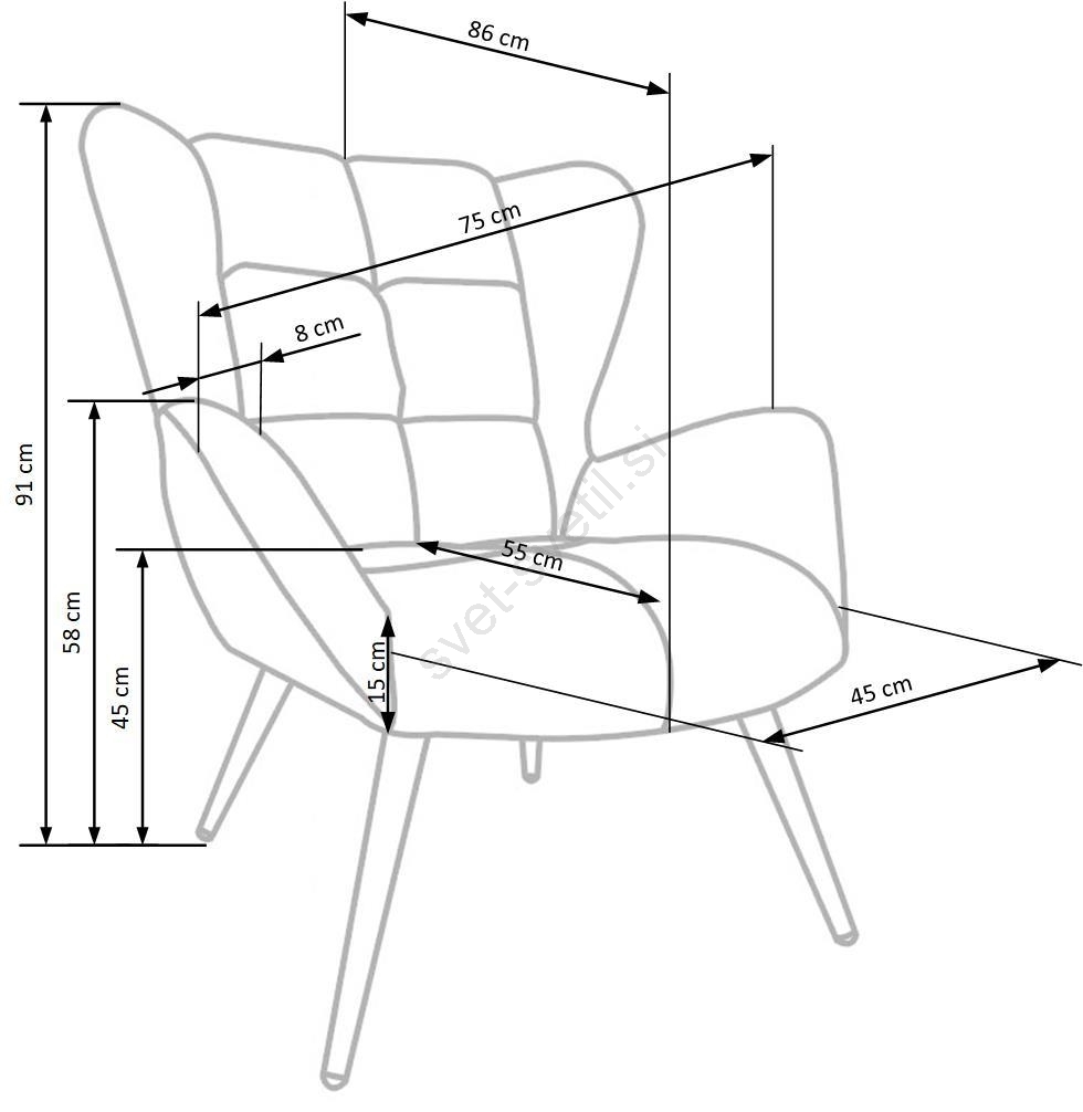 • Ta očarljiv in eleganten fotelj je zasnovan, da zagotovi največje udobje pri branju in počivanju.
