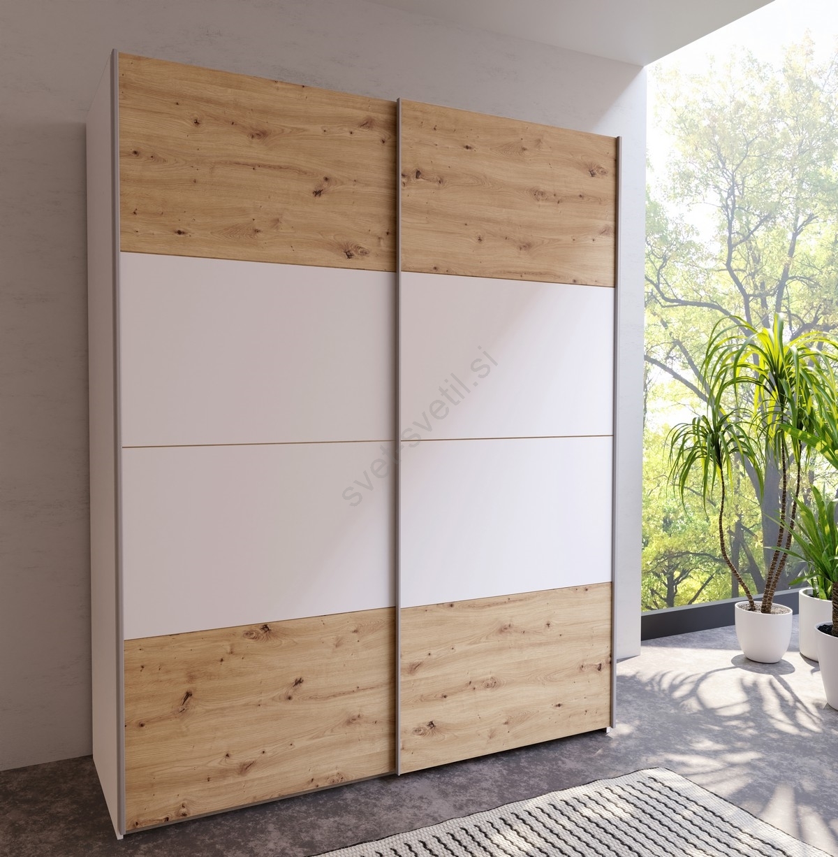 • Garderobna omara KARO 170x210 cm bela/hrast artisan