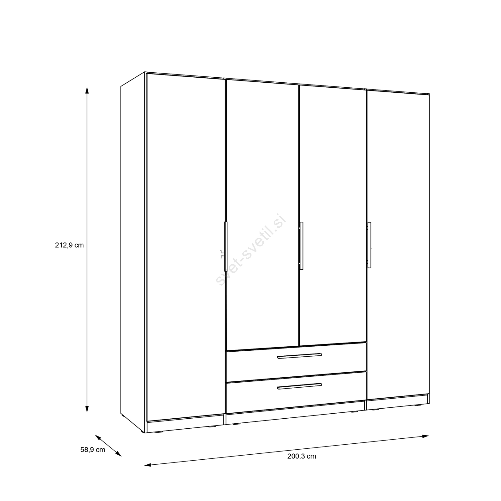 • Vnesite v svoj dom čar elegantne in praktične garderobne omare, ki poudarja čiste linije, prostorsko učinkovitost in brezčasen videz.