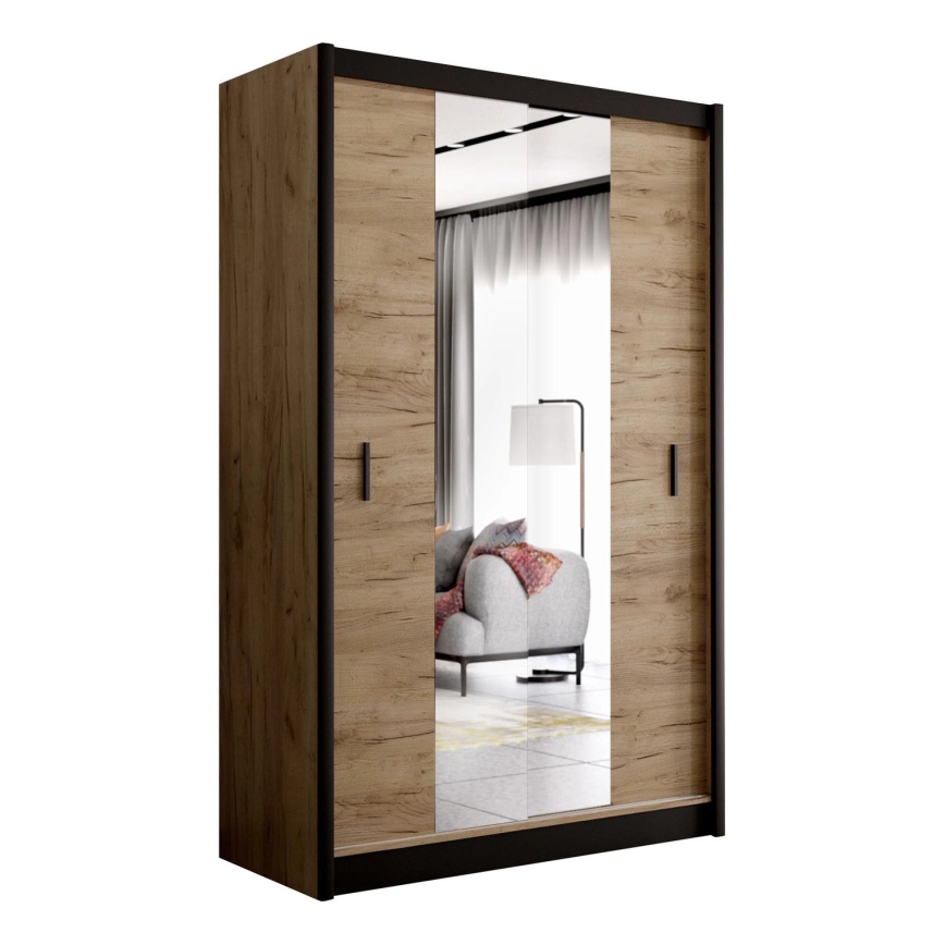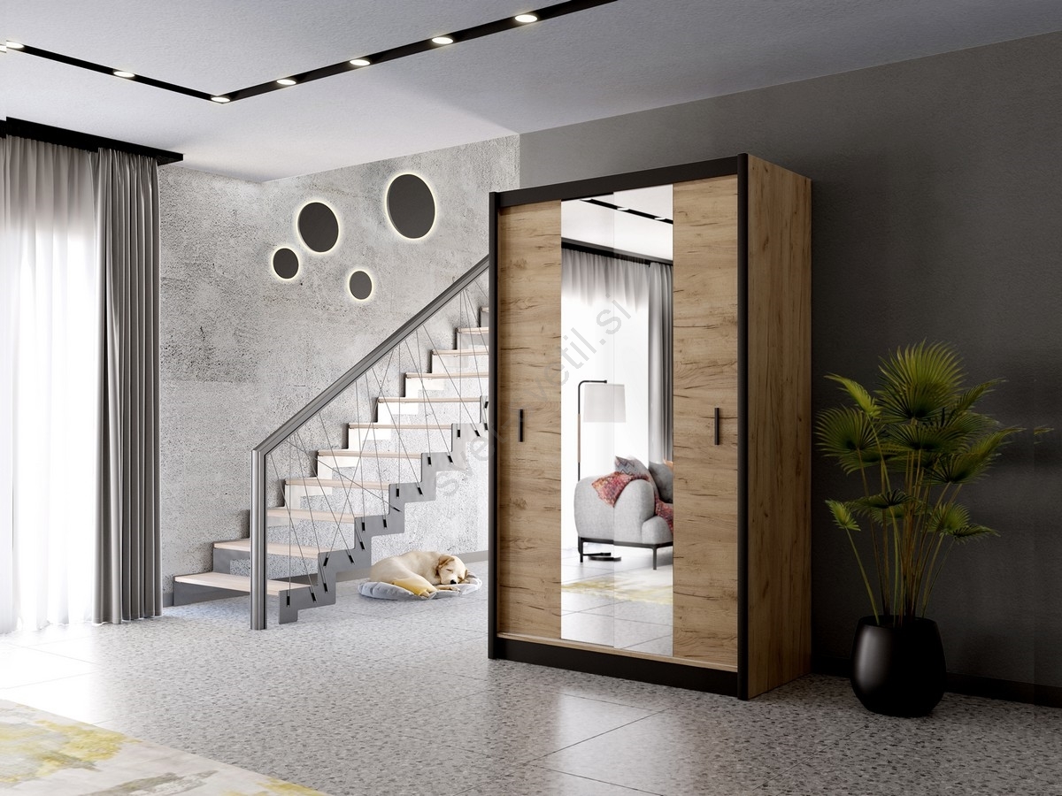 Omara z ogledalom MIRO 150x215 cm hrast craft/črna