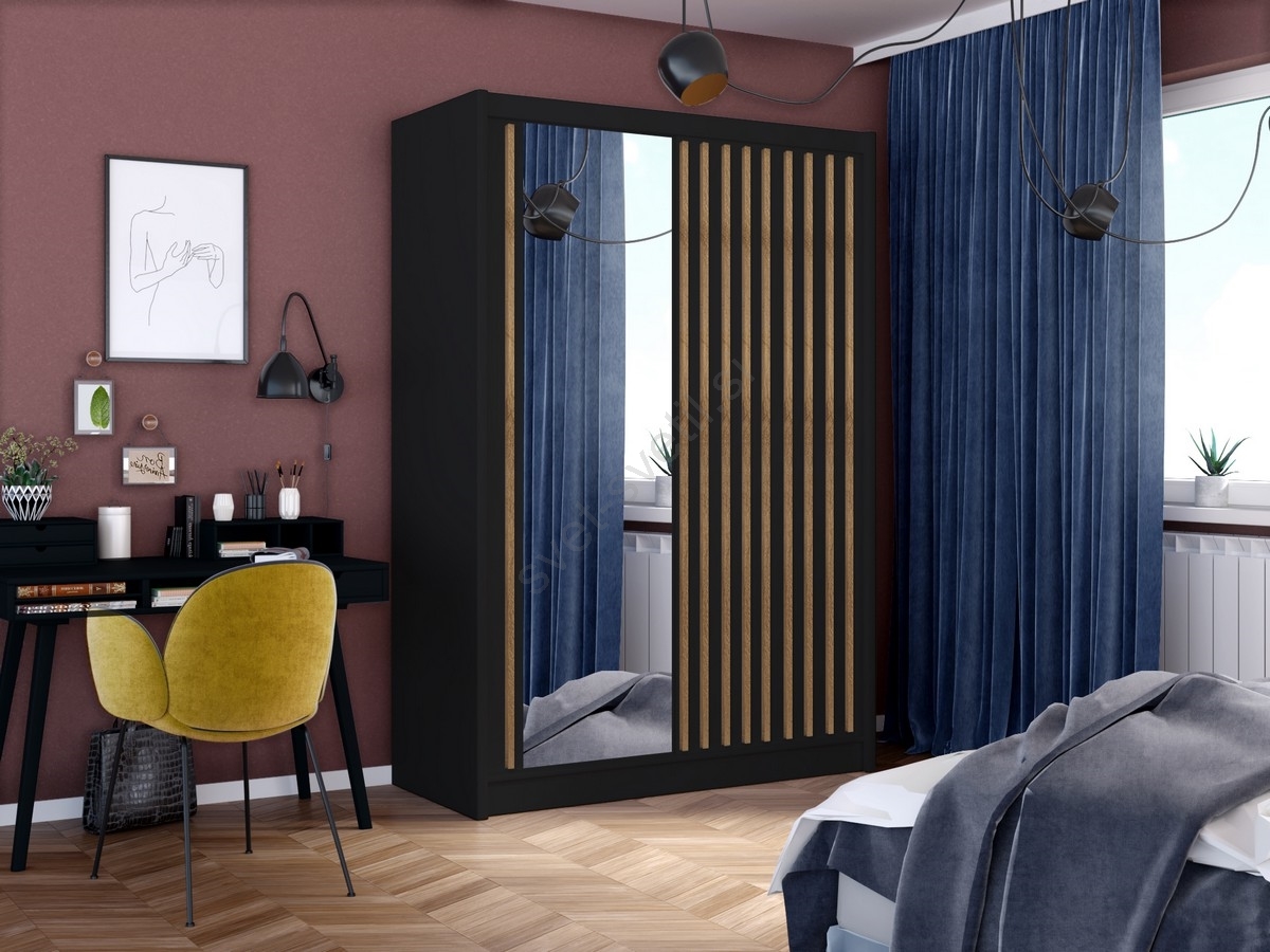 • Garderobna omara SANTINO 150x215 cm s ogledalom, črna/hrast craft